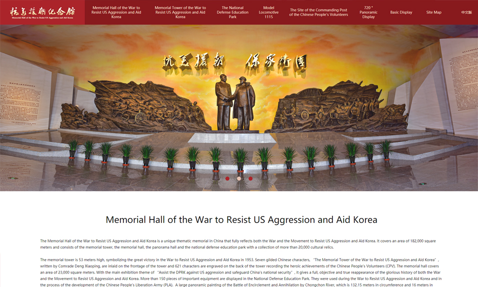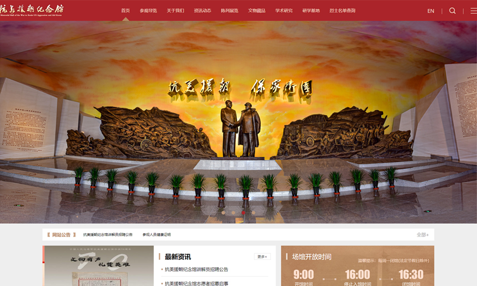 抗美(měi)援朝紀念館位于遼甯省丹東(d∏↓&ōng)市(shì)鴨綠(lǜ)江畔的(de)英華山(shān)上(shàn≤∑σg),與朝鮮民(mín)主主義人(rén)民(mín)共和(hé)國(guó±★©)新義州市(shì)隔江相(xiàng)望,是(shì§" )全國(guó)唯一(yī)全面反映中國<₹(guó)人(rén)民(mín)抗美(měi)援朝戰争和(hé)抗美(měi¶→↔♦)援朝運動曆史的(de)專題紀念館。